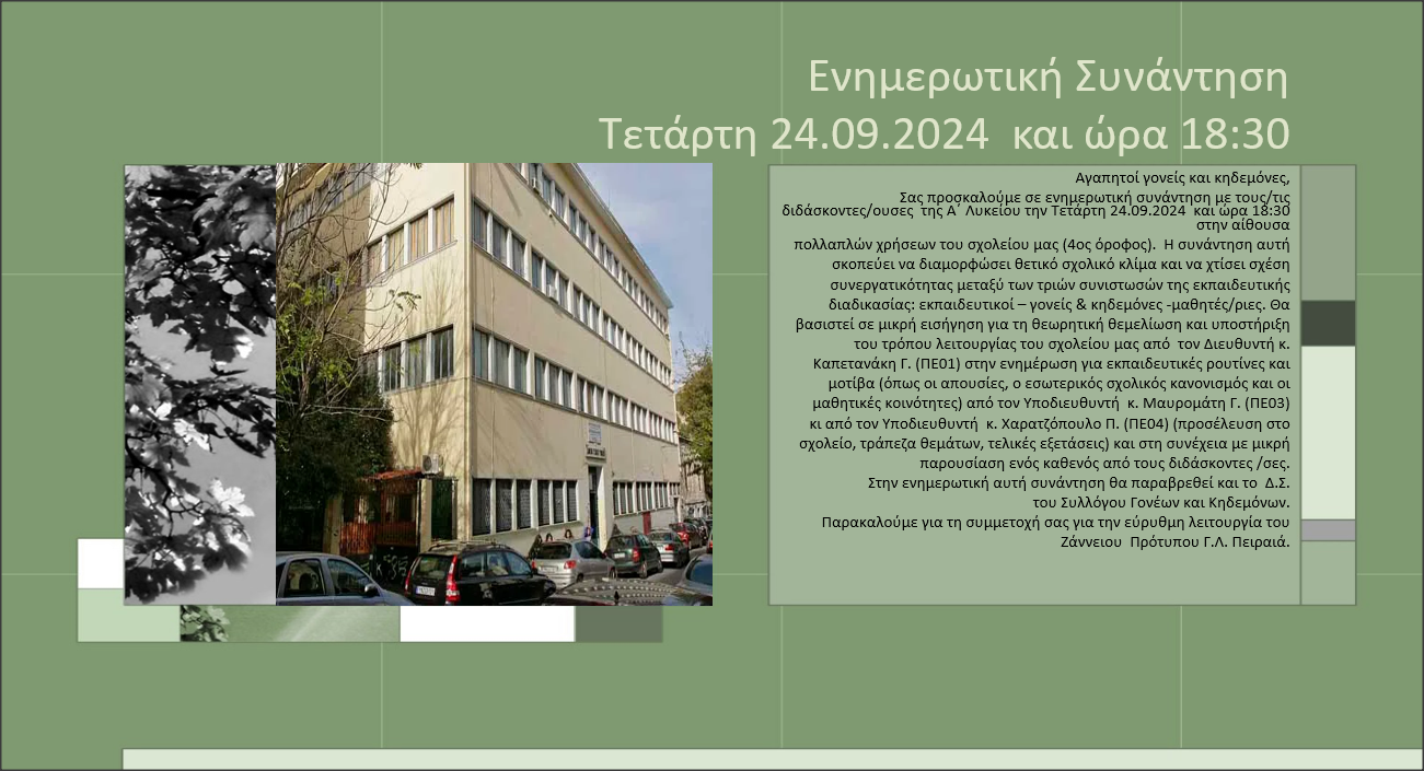 της Α΄ Λυκείου την Τετάρτη 24.09.2024 και ώρα 18:30 στην αίθουσα