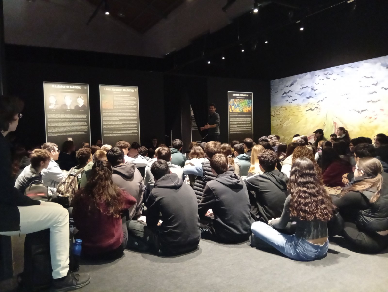 Την Τρίτη 25/11/2025 οι μαθητές της Α΄Λυκείου επισκέφτηκαν την πολυσυζητημένη παγκοσμίως έκθεση Van Gogh: The Immersive Experience στο Ολυμπιακό Κέντρο στο Γουδί. Τα παιδιά ξεναγήθηκαν στους χώρους της έκθεσης, απόλαυσαν ένα πρωτότυπο βιωματικό πολυθέαμα μέσα από προβολές και τρισδιάστατες αναπαραστάσεις των πινάκων του μεγάλου ζωγράφου, πήραν μέρος στο εργαστήρι ζωγραφικής και είδαν τα σχέδιά τους να ζωντανεύουν στον ειδικό τοίχο προβολής, και περιηγήθηκαν μέσα στον ονειρικό κόσμο της τέχνης στο Δωμάτιο Εικονικής Πραγματικότητας.
